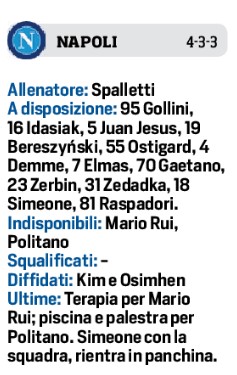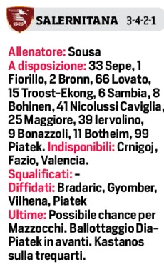(Formazioni) Il Cds mette in campo Napoli e Salernitana
