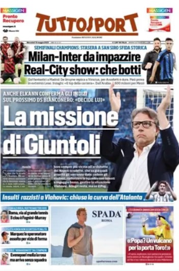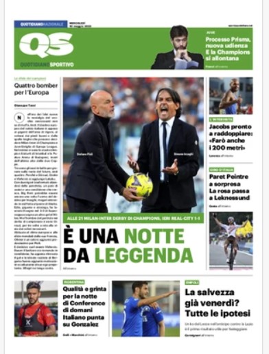 “PRIME PAGINE SPORTIVE”. Rassegna stampa del 10 maggio