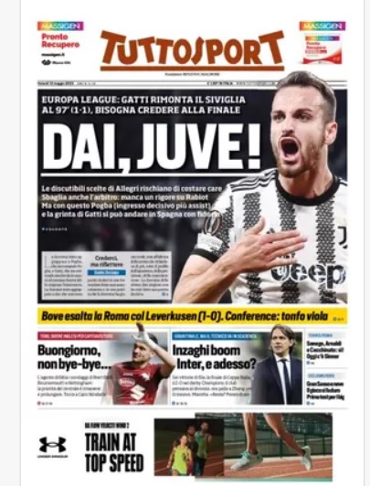 NewsCalcioIn Evidenza Rassegna stampa del 12 maggio. “PRIME PAGINE SPORTIVE” By Giuseppe Sacco il Mag 12, 2023 - 08:00:22 0 Condividi In primo piano sui principali quotidiani sportivi nazionali Factory della Comunicazione CalcioNapoliRassegnaStampa 0 Condividi FacebookTwitterGoogle+ReddItWhatsAppPinterestE-mail