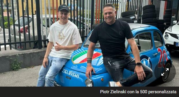 Il campione di rally Fabio Gianfico ha personalizzato una 500 per il suo amico Piotr Zielinski, neo campione d’Italia. Un’auto azzurra, con lo scudetto sul cofano, il cognome del centrocampista polacco e il suo numero di maglia.
