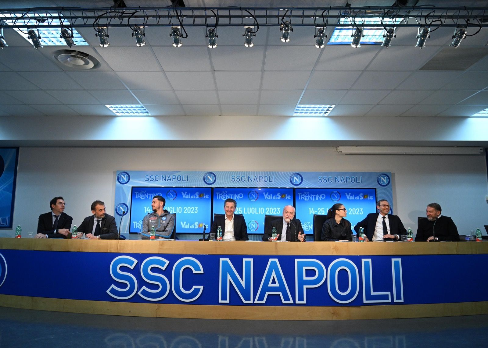 Il conto alla rovescia dei 57 giorni verso il nuovo ritiro è partito ufficialmente nella conferenza stampa ospitata oggi al SSC Napoli Konami Training Center a Castel Volturno con protagonisti Aurelio De Laurentiis (Presidente SSC Napoli) e la figlia Valentina, Roberto Failoni (Assessore Turismo e Sport del Trentino), Maurizio Rossini (Amministratore delegato Trentino Marketing), Luciano Rizzi (Presidente APT Val di Sole) e Andrea Lazzaroni (Sindaco del Comune di Dimaro Folgarida) presenti un centinaio di giornalisti. A nobilitare l’appuntamento la presenza di Alex Meret, tra i veterani della squadra in val di Sole: “E’ sempre un piacere tornare in Val di Sole, c’è grande organizzazione, strutture eccezionali e poi la possibilità di avere tanti tifosi al nostro fianco – le sue parole -. È una fase fondamentale per la stagione e poter svolgere il nostro lavoro al meglio è molto importante. Avere sostenitori azzurri al seguito da ogni parte del Mondo in trentino ci riempie di orgoglio e di gioia perché è anche grazie a loro se siamo riusciti a raggiungere questo grande traguardo dello scudetto”
