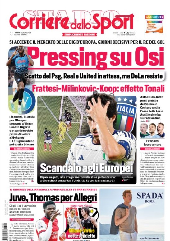 “PRIME PAGINE SPORTIVE”. Rassegna stampa del 23 giugno