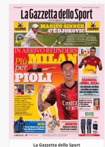 NewsCalcioIn Evidenza “PRIME PAGINE SPORTIVE”. Rassegna stampa del 12 luglio By Giuseppe Sacco il Lug 12, 2023 - 07:00:10 0 Condividi In primo piano sui principali quotidiani sportivi nazionali Factory della Comunicazione CalcioNapoliRasegnaStampa 0 Condividi FacebookTwitterGoogle+ReddItWhatsAppPinterestE-mail