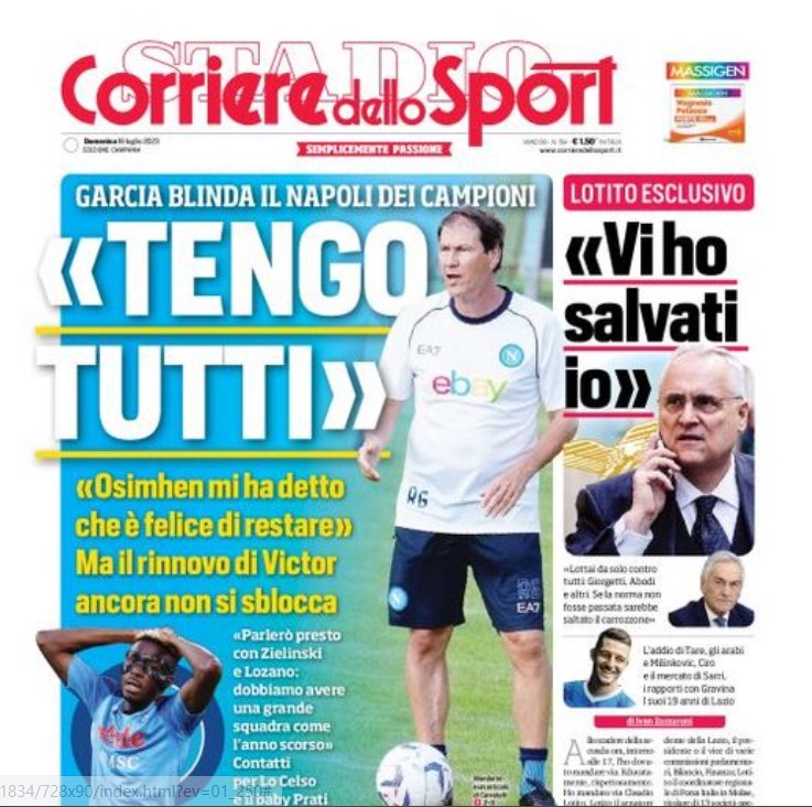 NewsCalcioRassegna Stampa CdS Campania – “Garcia: “TENGO TUTTI”. Aggiunge poi: “Parlerò con Piotr” By Giuseppe Sacco il Lug 16, 2023 - 07:41:07 0 Condividi In prima pagina sull’edizione Campania del Corriere dello sport Factory della Comunicazione CalcioCampaniaCorriereNapoli 0 Condividi FacebookTwitterGoogle+ReddItWhatsAppPinterestE-mail