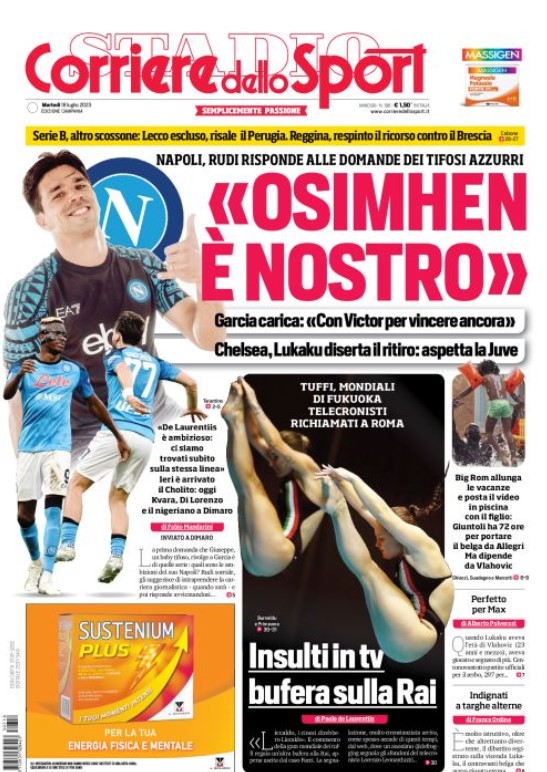 NewsCalcioRassegna Stampa CdS CAMPANIA – “OSIMHEN E’ NOSTRO”. Garcia: “Con Victor per vincere ancora”. Oggi sarà a Dimaro By Giuseppe Sacco il Lug 18, 2023 - 07:00:55 0 Condividi In primo piano e nel profilo interno del Cds edizione Campania Factory della Comunicazione CalcioGarciaNapoliOsimhen 0 Condividi FacebookTwitterGoogle+ReddItWhatsAppPinterestE-mail
