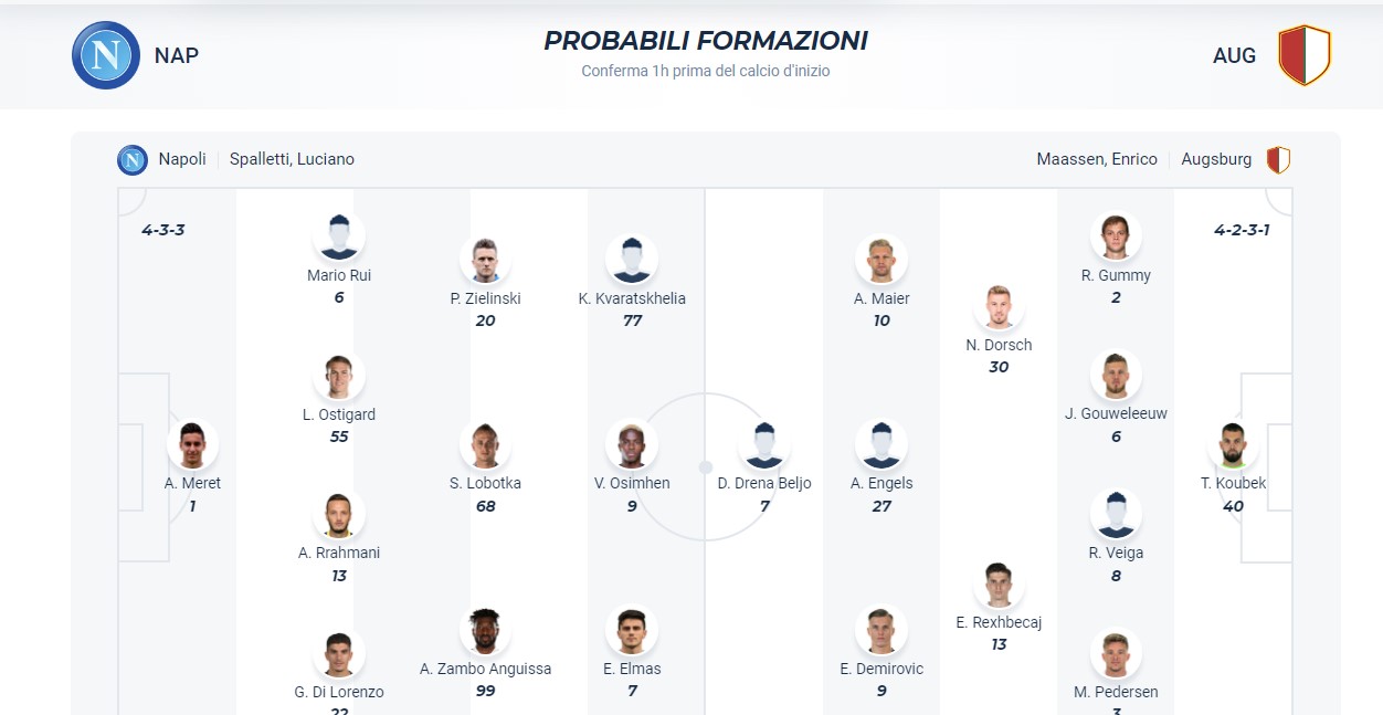 Per gli azzurri dubbi per Anguissa,Kvara e Osimhen.
