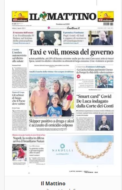 NewsCalcioIn Evidenza “PRIME PAGINE SPORTIVE”. Rassegna stampa del 5 agosto By Giuseppe Sacco il Ago 5, 2023 - 07:20:47 0 Condividi In primo piano sui principali quotidiani sportivi nazionali Factory della Comunicazione CalcioNapoliRassegnaStampa 0 Condividi FacebookTwitterGoogle+ReddItWhatsAppPinterestE-mail