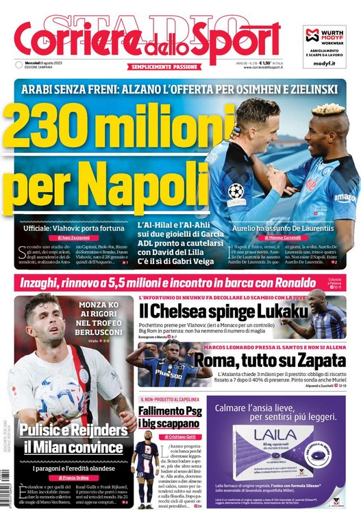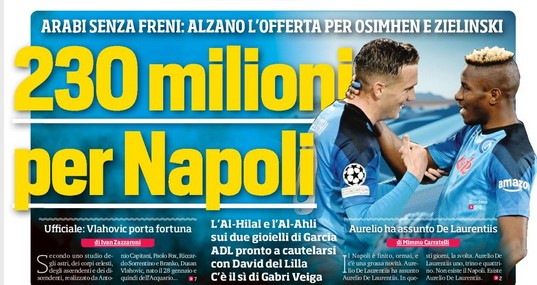 CdS Campania – “PER IL NAPOLI 230 MILIONI”. Gabry Veiga: sì ad ADL