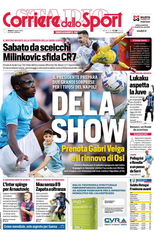 NewsCalcioRassegna Stampa “PRIME PAGINE SPORTIVE”. La rassegna del 12 agosto By Giuseppe Sacco il Ago 12, 2023 - 07:40:33 0 Condividi In primo piano sui principali quotidiani sportivi nazionali Factory della Comunicazione CalcioNapoliRassegnaStampa 0 Condividi FacebookTwitterGoogle+ReddItWhatsAppPinterestE-mail