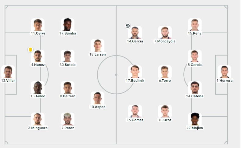 Resta viva la trattativa fra il Napoli e gli spagnoli del Celta Vigo, per il centrocampista Gabri Veiga. Oggi il Celta giocherà la prima di Liga contro l’Osasuna, alle ore 17,00. Di seguito le formazioni ufficiali, dove si evidenzia che Gabri Veiga non è fra i titolari ma parte dalla panchina, il che potrebbe essere un indizio per una eventuale imminente partenza verso l’azzurro.