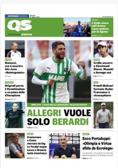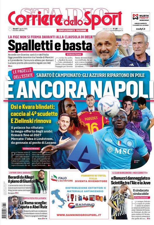 NewsCalcioIn Evidenza “PRIME PAGINE SPORTIVE”. La rassegna stampa nazionale By Giuseppe Sacco il Ago 17, 2023 - 07:00:20 0 Condividi In primo piano sui principali quotidiani sportivi nazionali Factory della Comunicazione CalcioNapoliRassegnaStampa 0 Condividi FacebookTwitterGoogle+ReddItWhatsAppPinterestE-mail
