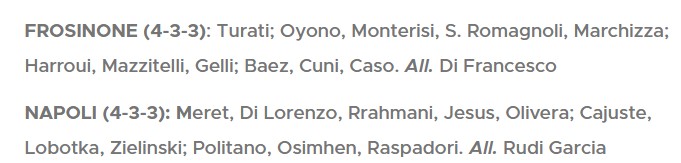 Il Napoli campione d’Italia apre la Serie A 2023/24 e fa visita al Frosinone neopromosso. Garcia da un lato e Di Francesco dall’altro, scelti per sostituire Spalletti e Grosso. Appuntamento allo stadio Stirpe di Frosinone, alle ore 18.30 di sabato 19 agosto 2023, per la prima giornata di Serie
