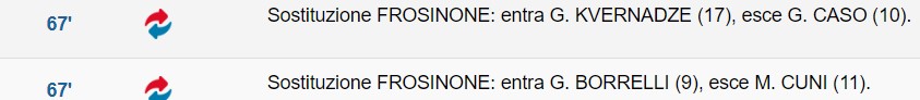 La ripresa: sarà il Frosinone a iniziare il 2° tempo