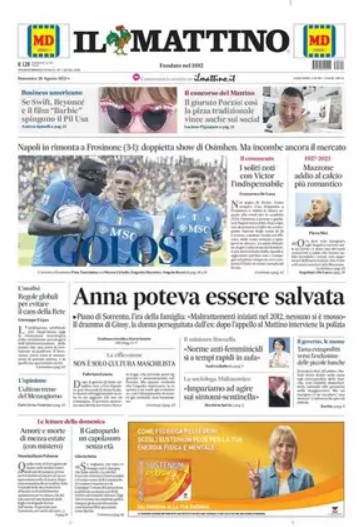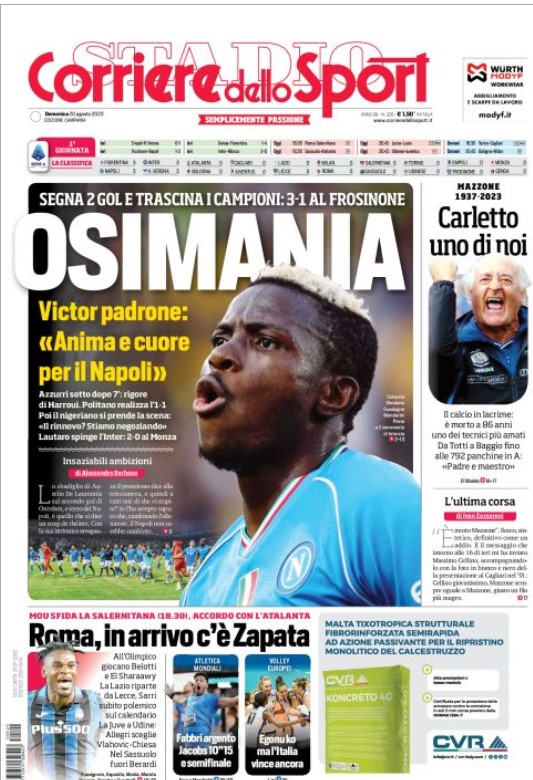 “PRIME PAGINE SPORTIVE NAZIONALI”. La Rassegna stampa del 20 agosto