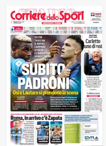 In primo piano sui principali quotidiani sportivi nazionali
