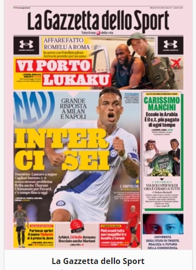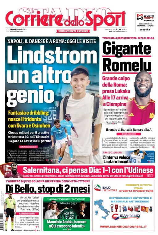 NewsCalcioRassegna Stampa “RASSEGNA STAMPA SPORTIVA”. Le prime pagine nazionali del 29 agosto By Giuseppe Sacco il Ago 29, 2023 - 07:40:49 0 Condividi In prima pagina sui principali quotidiani sportivi nazionali Factory della Comunicazione CalcioNapoliRassegnaStampa 0 Condividi FacebookTwitterGoogle+ReddItWhatsAppPinterestE-mail