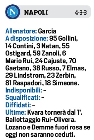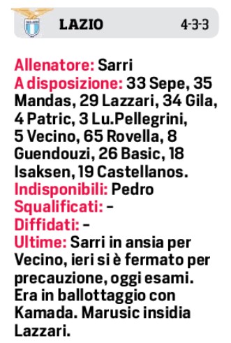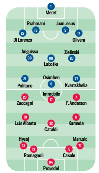 Siamo alla vigilia di quello che è lo scontro tra prima e la seconda classificata della passata stagione. Napoli/Lazio va di scena allo stadio Maradona domani sera. I padroni di casa hanno ripreso da dove avevano interrotto e sono a punteggio pieno dopo due giornate, la squadra di Sarri, invece, nelle prima due uscite stagionali è apparsa un po’ in difficoltà ed ha rimediato due sconfitte. Vorrà senza dubbi rifarsi in quello che sarà il big match di giornata. Il Corriere dello Sport prova a mettere in campo i 22 di questo strano testa coda: