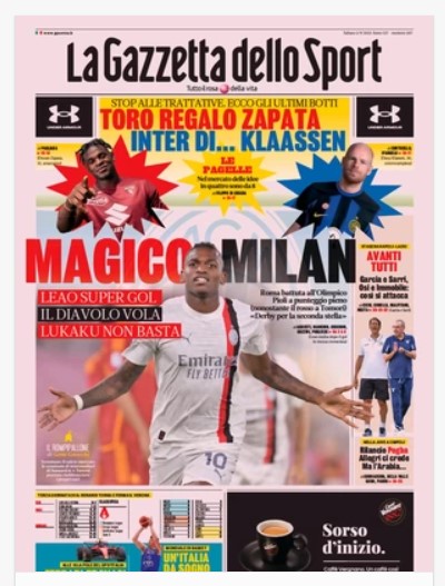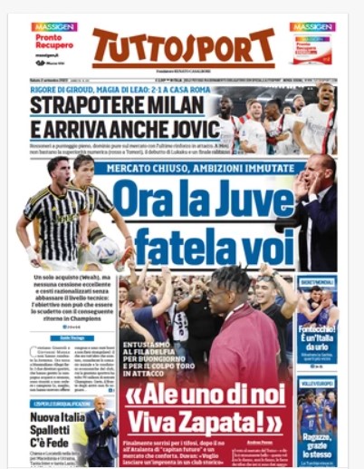 RASSEGNA STAMPA SPORTIVA. Le prime pagine del 2 settembre