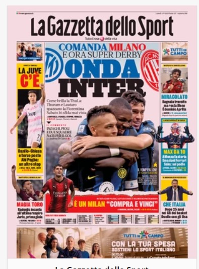 NewsCalcioIn Evidenza RASSEGNA STAMPA – Le prime pagine sportive del 4 settembre By Giuseppe Sacco il Set 4, 2023 - 07:20:13 0 Condividi In primo piano sui principali quotidiani sportivi nazionali Factory della Comunicazione CalcioNapoliRassegnaStampa 0 Condividi FacebookTwitterGoogle+ReddItWhatsAppPinterestE-mail