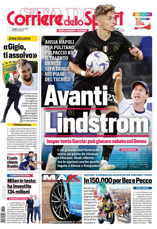 NewsCalcioIn Evidenza “RASSEGNA STAMPA”. Le prime pagine sportive nazionali dell’ 11 settembre By Giuseppe Sacco il Set 11, 2023 - 07:00:43 0 Condividi In primo piano sui principali quotidiani sportivi nazionali Factory della Comunicazione CalcioNapoliRassegnaStampa 0 Condividi FacebookTwitterGoogle+ReddItWhatsAppPinterestE-mail