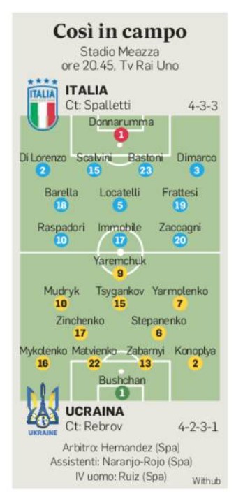 sorpresa Jack Raspadori. Scrive Il Mattino: “Stasera Jack dovrebbe partire dall’inizio e proverà a duettare con Di Lorenzo sulla stessa catena di destra. Il difensore, intanto, rispedisce al mittente i paragoni e i paralleli tra la Nazionale ed il Napoli dello scudetto, guidato proprio da Spalletti. «Non dobbiamo aspettarci dalla Nazionale il gioco fatto a Napoli – ammonisce in conferenza stampa – ci sono i giocatori che vanno in campo e non siamo tutti uguali. Il mister ha un’idea di gioco, vuole mettere in campo una squadra coraggiosa e può farlo anche qui». Di Lorenzo suona la carica e si dice certo delle qualità dell’Italia.