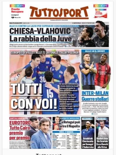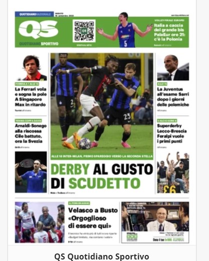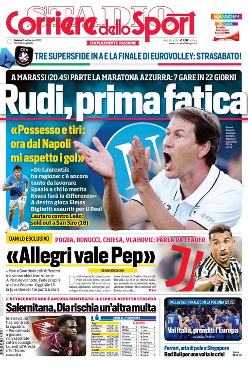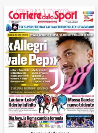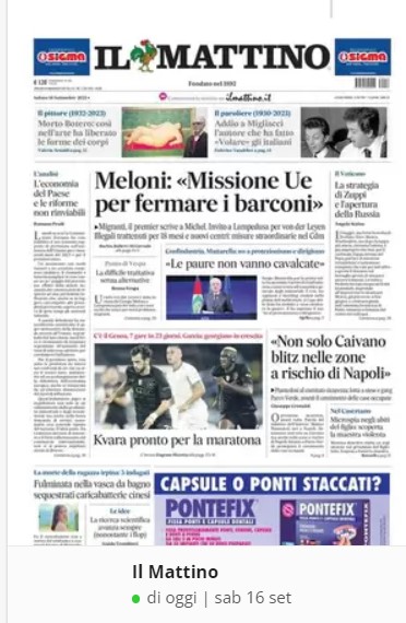 NewsCalcioIn Evidenza “RASSEGNA STAMPA SPORTIVA”. Prime pagine nazionali By Giuseppe Sacco il Set 16, 2023 - 07:00:01 0 Condividi In primo piano sui principali quotidiani sportivi nazionali Factory della Comunicazione CalcioNapoliRassegnaStampa 0 Condividi FacebookTwitterGoogle+ReddItWhatsAppPinterestE-mail