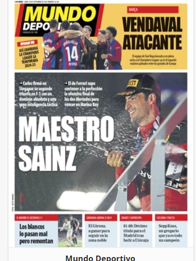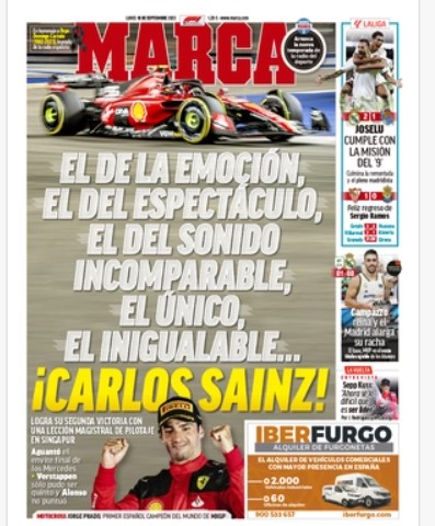 Caratura È il giorno della consacrazione per il figlio d’arte, cresciuto seguendo le orme di papà Carlos, campione mondiale di rally e re della Dakar. Fino a ieri Carlos jr aveva dimostrato costanza nelle prestazioni e solidità, riuscendo a vincere sulla rossa a Silverstone nel 2022, dopo otto stagioni di piazzamenti con Toro Rosso, Renault e McLaren. Da ieri ha cambiato caratura, entrando nel novero dei fuoriclasse della F.1, capaci di fare cose speciali. La vittoria fra le strade di Marina Bay, un circuito tutto curve e muretti dove avevano primeggiato Alonso, Hamilton e Vettel, è stata un capolavoro di abilità di guida e strategia. Partenza perfetta dalla pole; l’aiuto decisivo del compagno di squadra Charles Leclerc, che è scattato con le gomme soft e si è subito messo davanti alla Mercedes di George Russell, rallentato su ordine del team in modo da creare un distacco di 5” fra il leader e gli inseguitori; poi una straordinaria gestione di gomme e nervi da parte di Sainz durata 42 giri, dopo il pit stop anticipato per la Safety Car dovuta all’incidente di Sargeant.