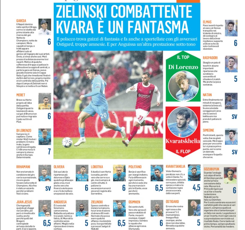 Le pagelle azzurre de Il Mattino – Piotr è un combattente, Kvara un fantasma