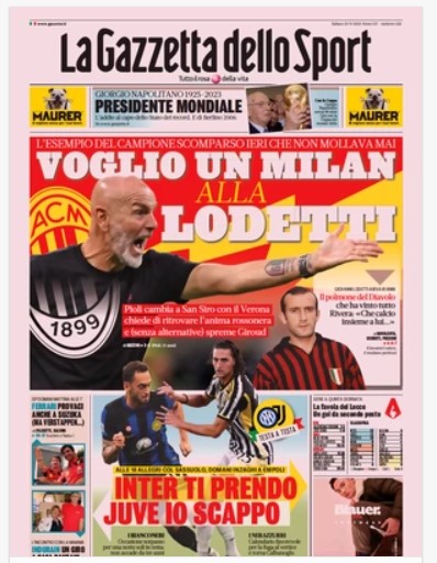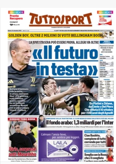 Rassegna StampaCalcioIn Evidenza “RASSEGNA STAMPA”. Prime pagine sportive nazionali By Giuseppe Sacco il Set 23, 2023 - 07:00:33 0 Condividi In primo piano sui principali quotidiani sportivi nazionali Factory della Comunicazione CalcioNapoliRassegnaStampa 0 Condividi FacebookTwitterGoogle+ReddItWhatsAppPinterestE-mail