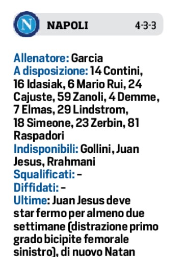 (Formazioni) Napoli-Udinese. Il Cds dà le possibili formazioni. Manca Raspadori
