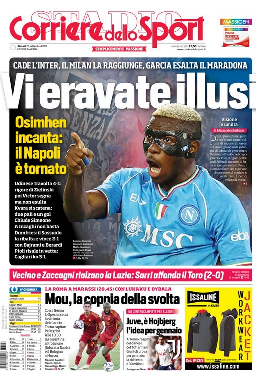 “RASSEGNA STAMPA”. Le prime pagine sportive nazionali del 28 settembre