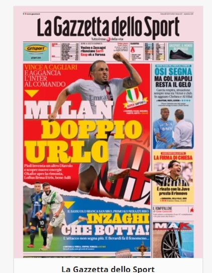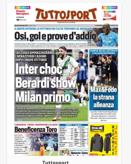 In primo piano e nel profilo interno dai principali quotidiani sportivi nazionali