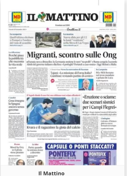 NewsCalcioIn Evidenza “RASSEGNA STAMPA” – LE PRIME PAGINE SPORTIVE DEL 29 SETTEMBRE By Giuseppe Sacco il Set 29, 2023 - 07:00:53 0 Condividi In primo piano sui principali quotidiani sportivi nazionali Factory della Comunicazione CalcioNapoliRassegnaStampa 0 Condividi FacebookTwitterGoogle+ReddItWhatsAppPinterestE-mail