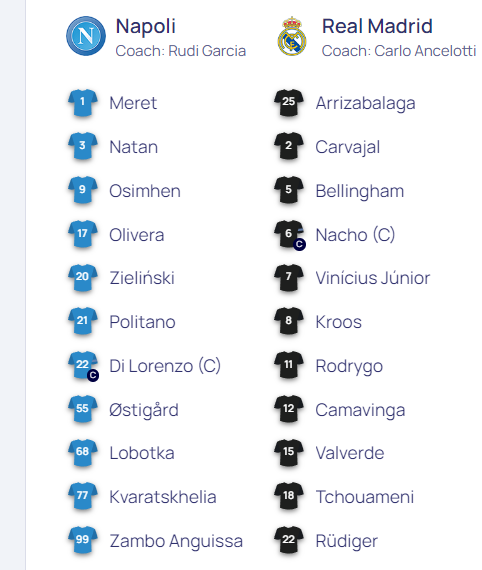 UFFICIALE – Così in campo Napoli e Real Madrid