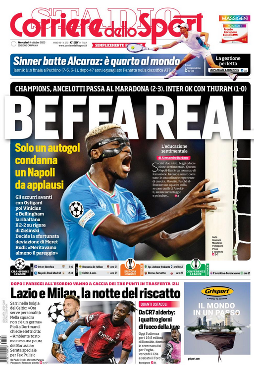 NewsCalcioIn Evidenza “RASSEGNA STAMPA”. Le prime pagine sportive nazionali By Giuseppe Sacco il Ott 4, 2023 - 07:00:07 0 Condividi In primo piano sui principali quotidiani sportivi nazionali del 4 ottobre Factory della Comunicazione calvioNapoliRassenaStampa 0 Condividi FacebookTwitterGoogle+ReddItWhatsAppPinterestE-mail