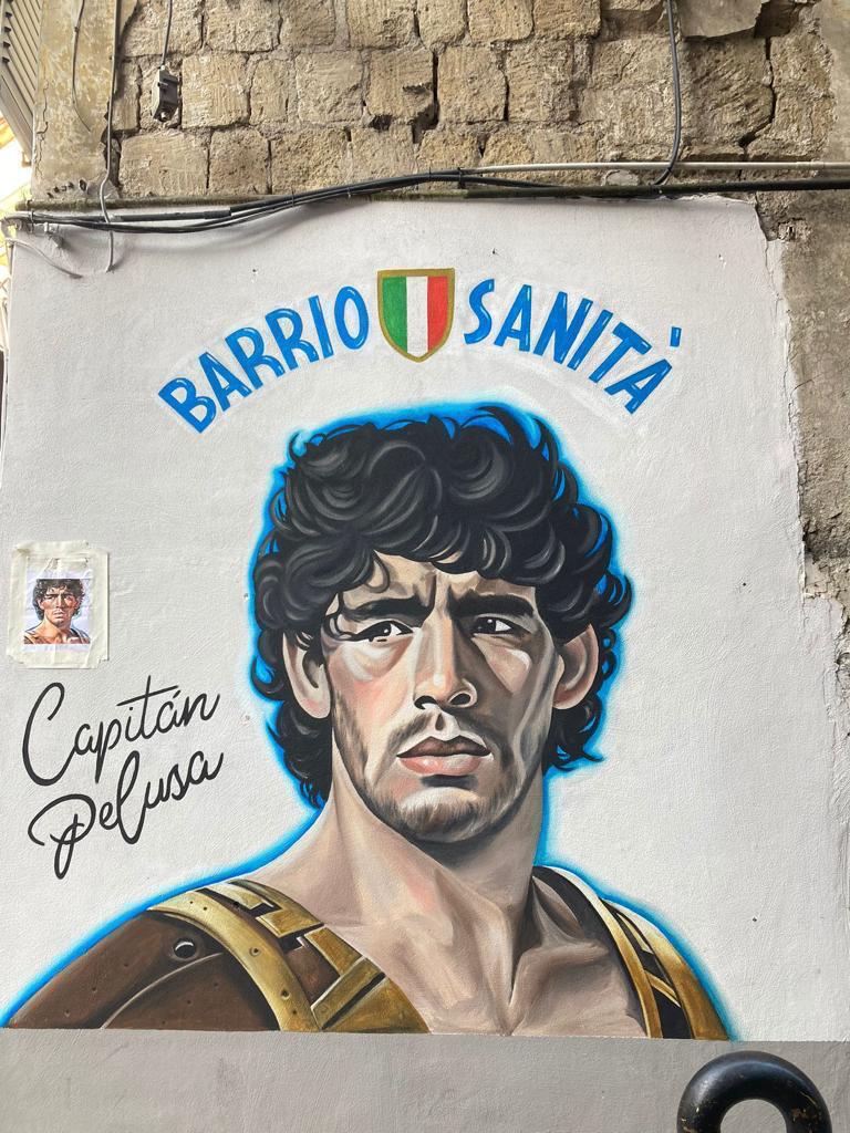 Realizzato da un ragazzo argentino in vacanza a Napoli per una settimana che si è innamorato del quartiere sanità e ha realizzato il dipinto in due giorni.