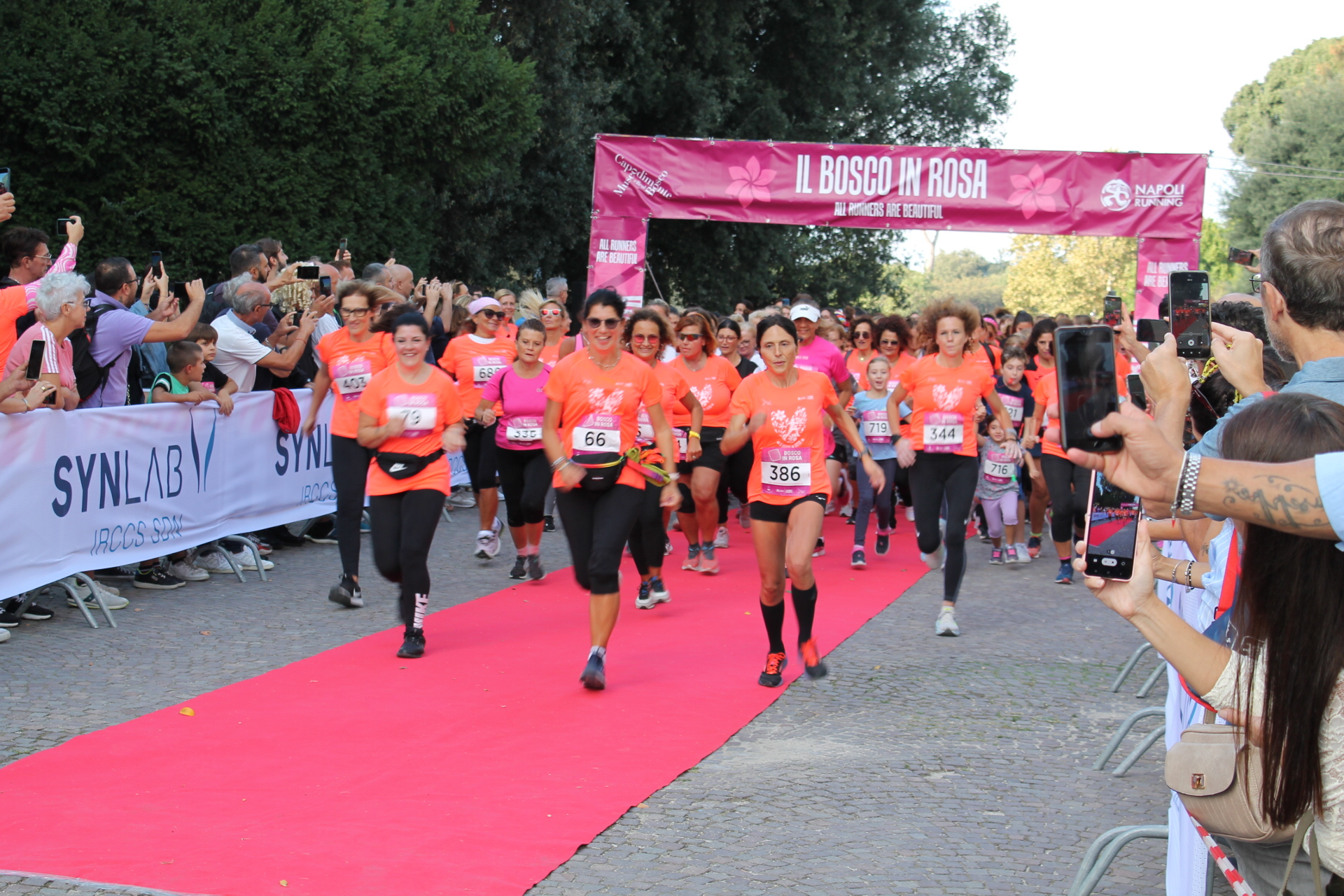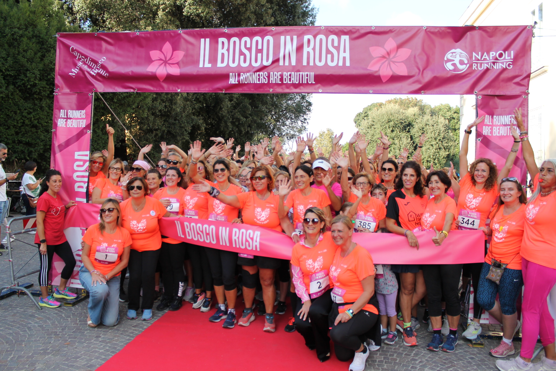Un successo oltre ogni più rosea aspettativa. Ed il colore non è usato a caso perché la quarta edizione de Il “Bosco in Rosa – Corri tra i Capolavori”, ha portato nel parco di Capodimonte oltre mille persone tra le ottocento Runners, accompagnatori e bambini che hanno invaso l’area dell’Istituto Caselli del parco settecentesco voluto da Carlo III di Borbone. Una festa di colori nei quali il rosa spiccava con le T-shirt vendute nello stand dei Sostenitori del Santobono che hanno fatto registrare il Sold Out. Al via, tra le tante donne, dai due mesi agli 84 anni, anche l’assessore allo sport ed alle pari opportunità del Comune di Napoli Emanuela Ferrante, e la vicepresidente della Federatletica campana, Amalia Di Martino