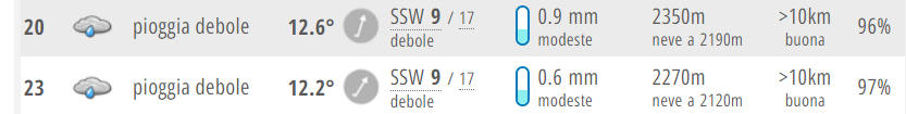 Il meteo durante la gara
