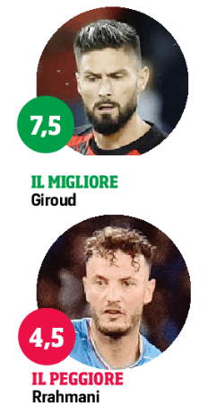 Giroud lo inchioda due volte: solo, sconsolato. Risponde a Musah e Leao dalla distanza.