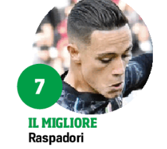 Strappa alla sua maniera, si prende falli sistematici, produce idee e a volte anche irritazione, perché gli piace dribblare. Poi risparmia 20′, sullo 0-1, ma la partita dà ragione a Garcia.