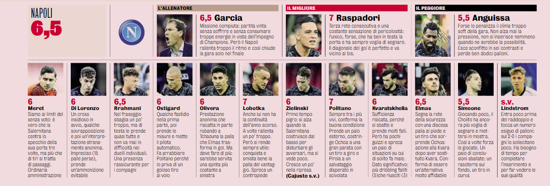 NewsCalcioRassegna Stampa Per la Gazzetta dello Sport – Top Jack, flop Anguissa. Trottolino Politano By Giuseppe Sacco il Nov 5, 2023 - 19:40:15 0 Condividi Politano sempre trai più vivaci, Simeone forza troppo Factory della Comunicazione CalcioGAZZETTANapolivoti 0 Condividi FacebookTwitterGoogle+ReddItWhatsAppPinterestE-mail
