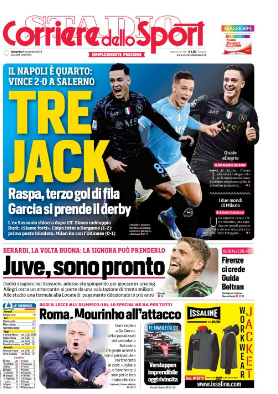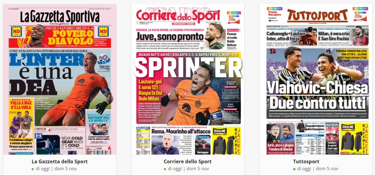 “PRIME PAGINE SPORTIVE” del 5 novembre. Rassegna stampa nazionale