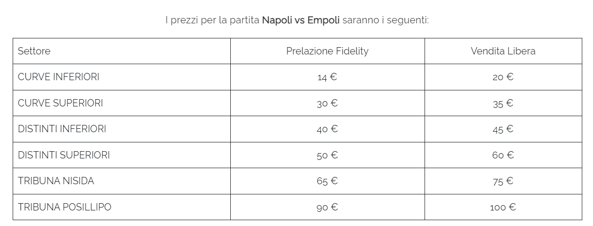 Ufficiale- Oggi ultimo giorno (Fase 1) per i biglietti di Napoli-Empoli
