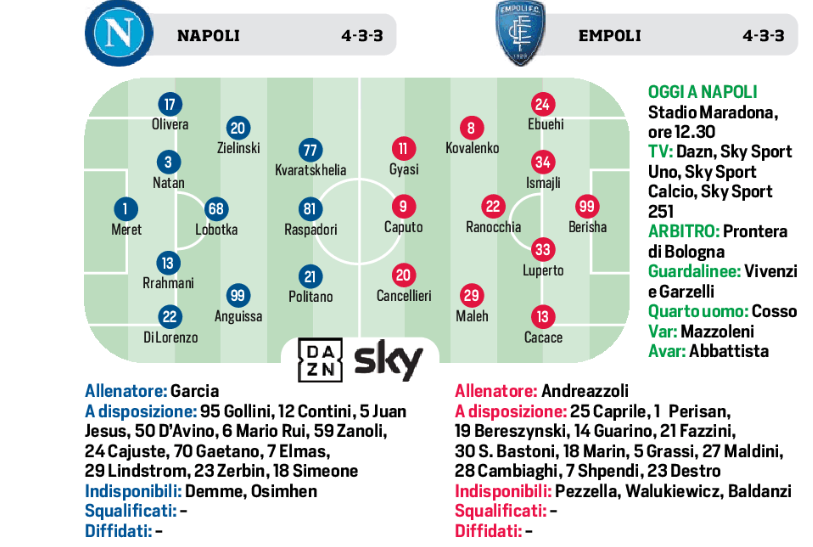 (Formazioni) Napoli e Empoli: le possibili formazioni del Corriere dello Sport