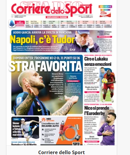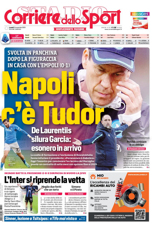 NewsCalcioIn Evidenza Rassegna stampa sportiva del 13 novembre. LE PRIME PAGINE By Giuseppe Sacco il Nov 13, 2023 - 07:01:43 0 Condividi Sui principali quotidiani sportivi nazionali Factory della Comunicazione PaginePeimeprimeRassegna 0 Condividi FacebookTwitterGoogle+ReddItWhatsAppPinterestE-mail