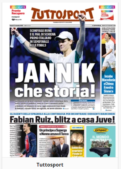 NewsCalcioIn Evidenza “PRIME PAGINE SPORTIVE”. Rassegna stampa del 17 novembre By Giuseppe Sacco il Nov 17, 2023 - 07:00:01 0 Condividi IN PRIMO PIANO SUI PRINCIPALI QUOTIDIANI SPORTIVI NAZIONALI Factory della Comunicazione CalcioNapoliRassegnaStampa 0 Condividi FacebookTwitterGoogle+ReddItWhatsAppPinterestE-mail