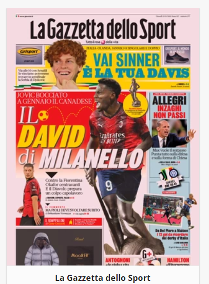NewsCalcioIn Evidenza “PRIME PAGINE SPORTIVE”. Rassegna stampa del 23 novembre By Giuseppe Sacco il Nov 23, 2023 - 07:00:55 0 Condividi Rassegna stampa dl 23 novembre. “PRIME PAGINE SPORTIVE” Factory della Comunicazione CalcioNapoliRassegnaStampa 0 Condividi FacebookTwitterGoogle+ReddItWhatsAppPinterestE-mail