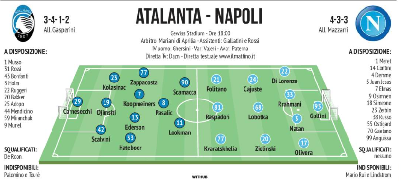(Formazioni) “Il Mattino” mette in campo Napoli e Atalanta. Due moduli molto diversi