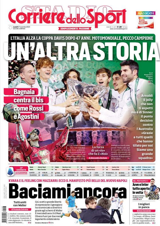 NewsCalcioIn Evidenza La rassegna stampa del 27 novembre. Prime pagine sportive By Giuseppe Sacco il Nov 27, 2023 - 07:00:23 0 Condividi In primo piano sui principali quotidiani sportivi nazionali Factory della Comunicazione CalcioNapolliRassegnaStampa 0 Condividi FacebookTwitterGoogle+ReddItWhatsAppPinterestE-mail