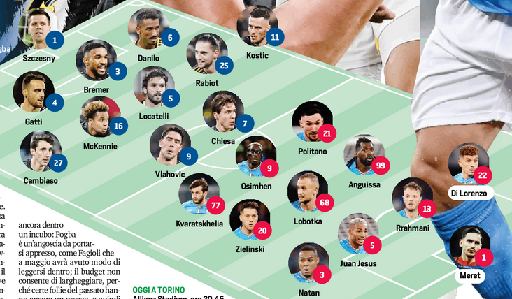 Quella anti-Napoli sarà la Juve dei ritorni e delle certezze. Allegri non avrà a disposizione il solo Weah (ancora alle prese con il fastidio muscolare che lo tiene fuori ormai da oltre un mese) mentre Danilo e Locatelli sono pronti a tornare titolari. Non sono ancora al top ma dovrebbero partire dal primo minuto, a meno di segnali contrari dalla rifinitura in programma questa mattina. Il capitano completerà il terzetto difensivo con Gatti e Bremer e probabilmente, come ammesso dal tecnico, farà staffetta con Alex Sandro, pure lui recuperato ma non al massimo della condizione e già protagonista a Monza una settimana fa. Dopo due ingressi dalla panchina nelle ultime due partite, Locatelli, dolore alla costola permettendo, riprenderà invece il timone del centrocampo con al fianco McKennie mezzala destra e Rabiot interno sinistro. In caso di nuovi problemi, Max potrebbe affidarsi ancora una volta a Nicolussi Caviglia, reduce da due gare da titolare con Inter e Monza. Sulle fasce, invece, toccherà ancora a Cambiaso a destra mentre sulla corsia opposta agirà Kostic.